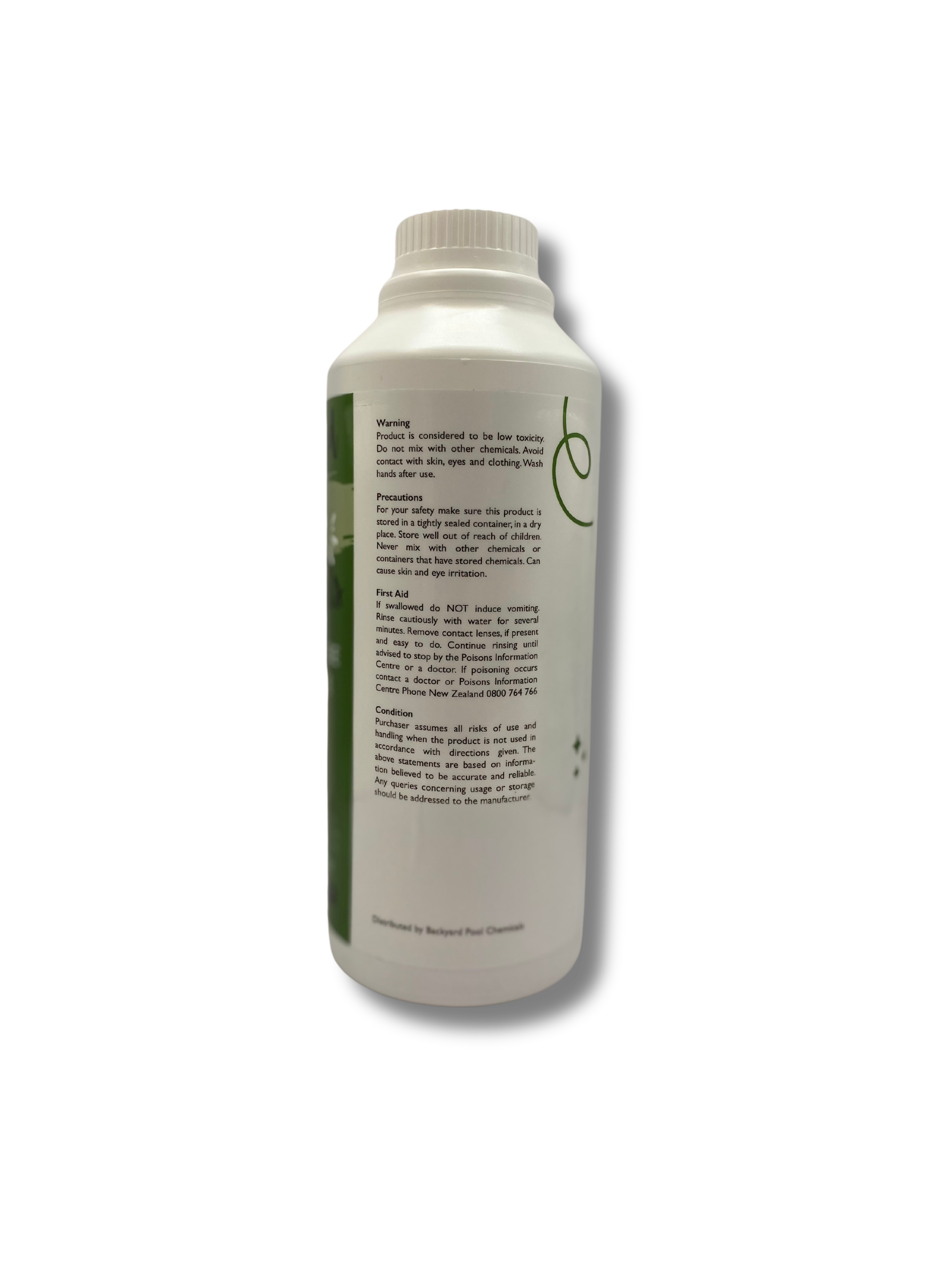 Designed and manufactured right here in NZ All Purpose Algaecide is universal algaecide, which can be used in all pools. It is a Metal Free Concentrated Pool Algaecide 340g/L Polymeric Quaternary Ammonium Compound. All Purpose Algaecide a perfect back up in your pump shed when you need it. It also has a built in clarifier to keep your pool looking top shape.