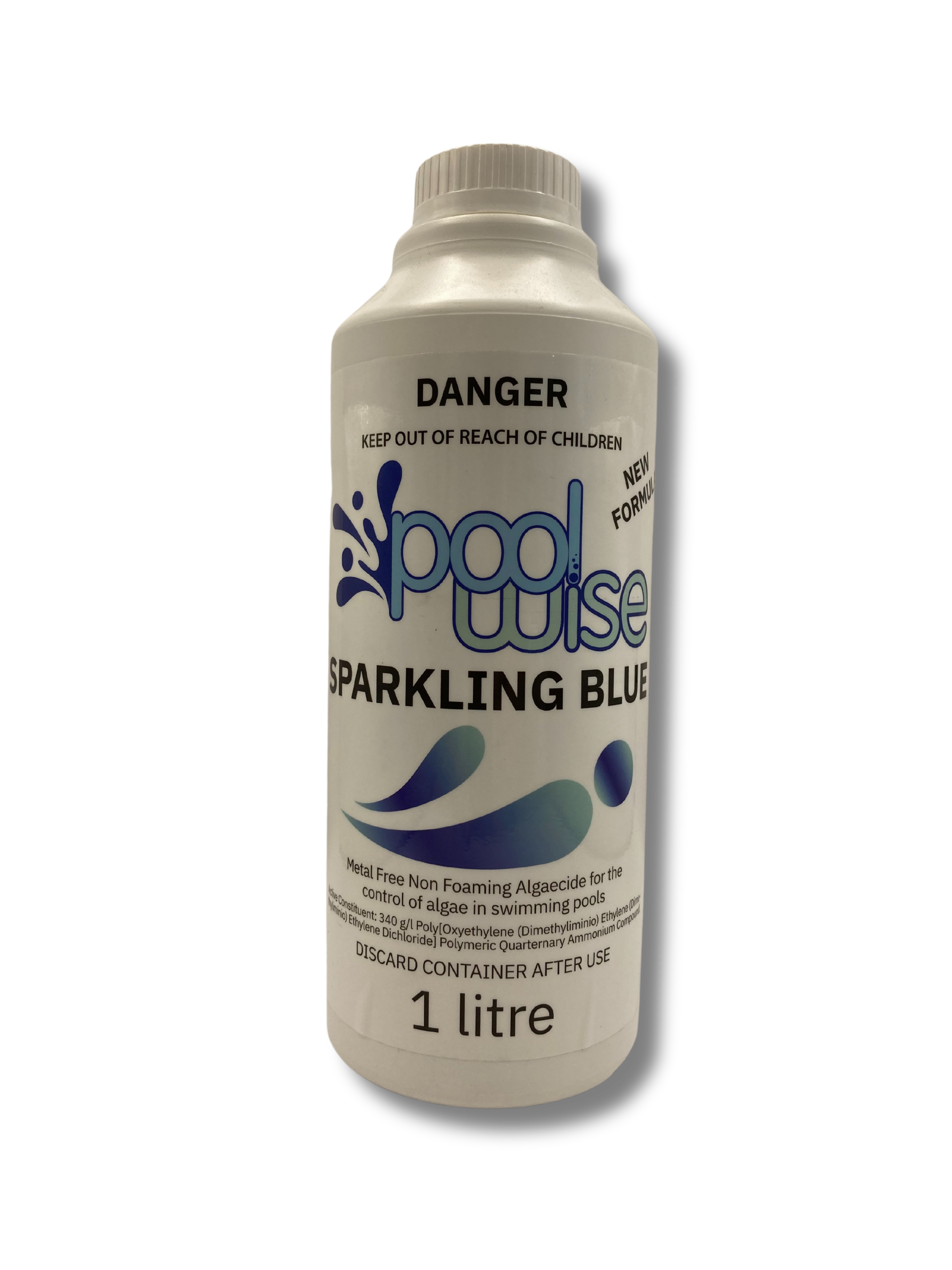 Designed and manufactured right here in NZ Sparkling Blue Algaecide is an all purpose algaecide which can be used in all pools. It is a Metal Free Concentrated Pool Algaecide 340g/L Polymeric Quaternary Ammonium Compound. Kills Black spot, Blue-green, Mustard and Green Algae. Either used to treat a green pool or prevent it over extended periods while you are away. Sparkling Blue is a perfect back up in your pump shed when you need it. It also has a built in clarifier to keep your pool looking top shape.